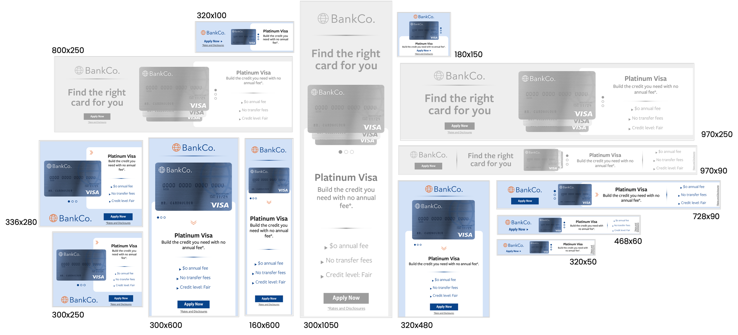 Utilizing animation and alternate layouts, we are able to include all relevant information within smaller ad sizes.